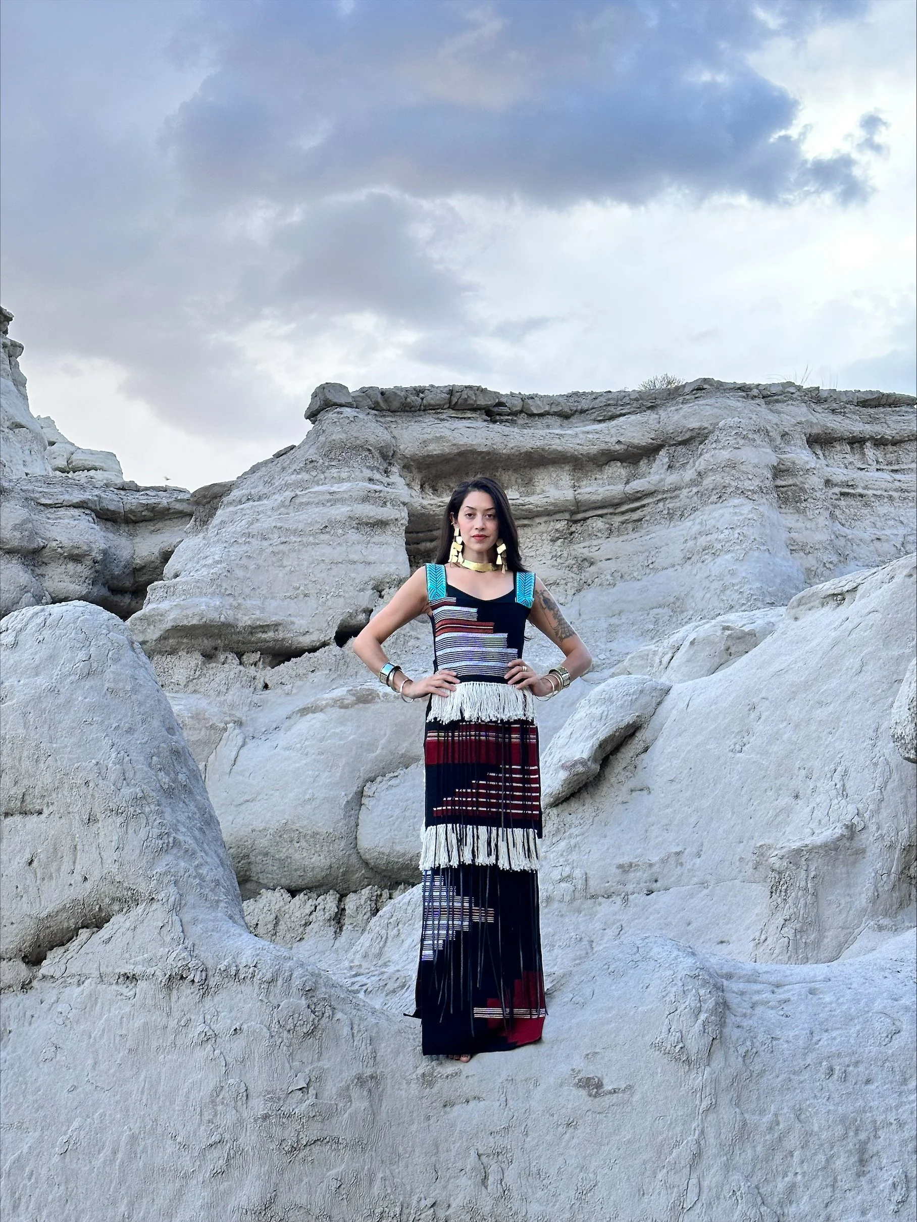 Her work is moved by the spirit of the land and the deserts of the American Southwest, which her lineage hails from. Her Mexican, Tohono O’odham & Spanish heritage provide artistic portals through which she communes with her ancestors to bring forth the legacy of textiles as timeless objects of art.